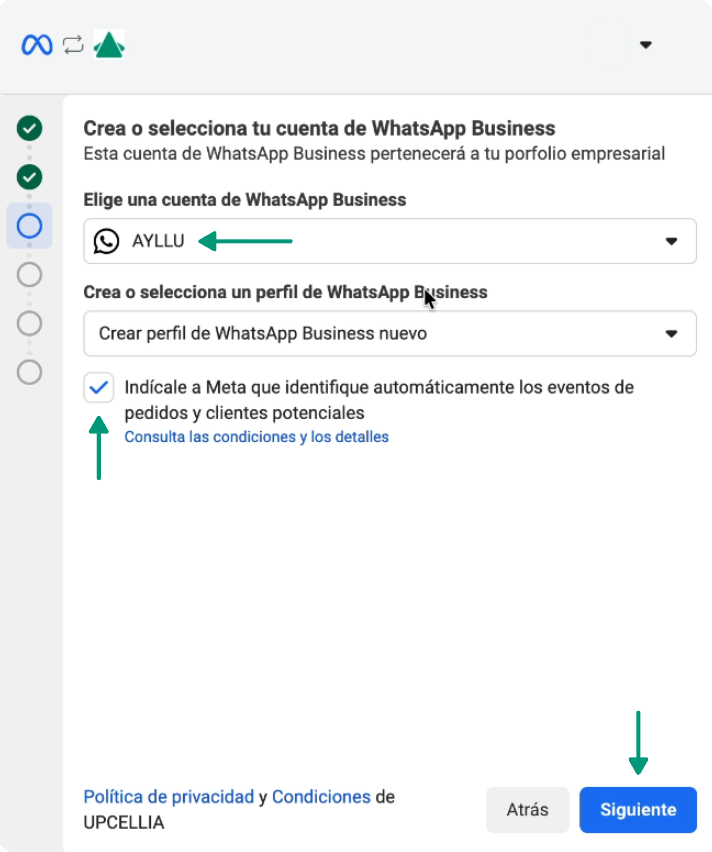 Selecciona el perfil de WhatsApp Business que deseas vincular.