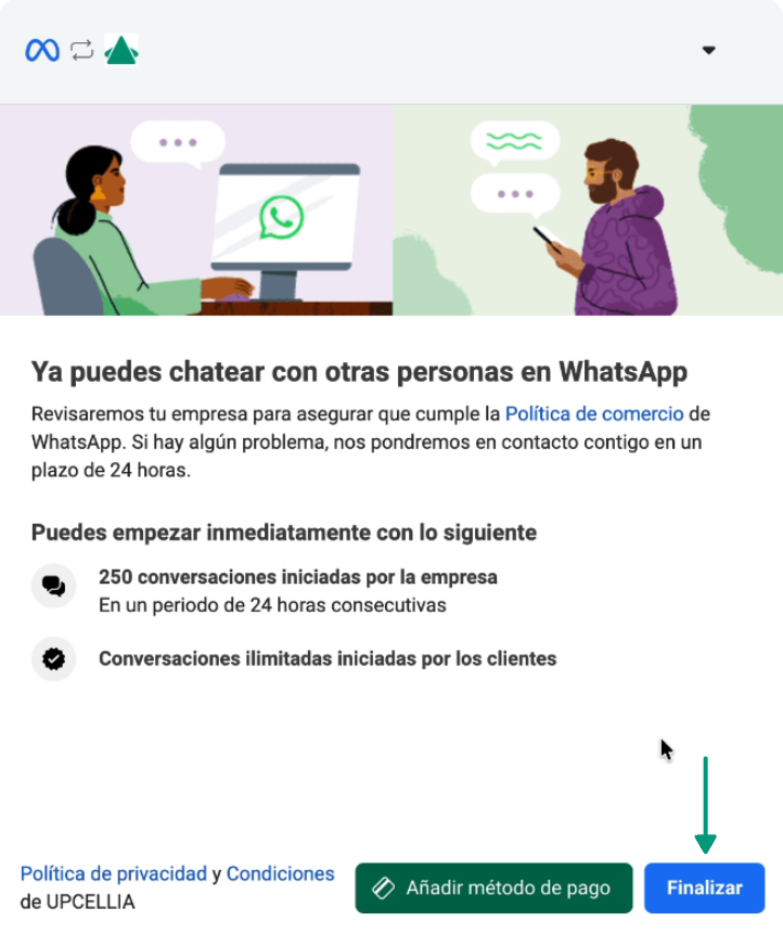 ¡Listo! Tu canal de WhatsApp ha sido conectado exitosamente a tu cuenta de Upcellia.