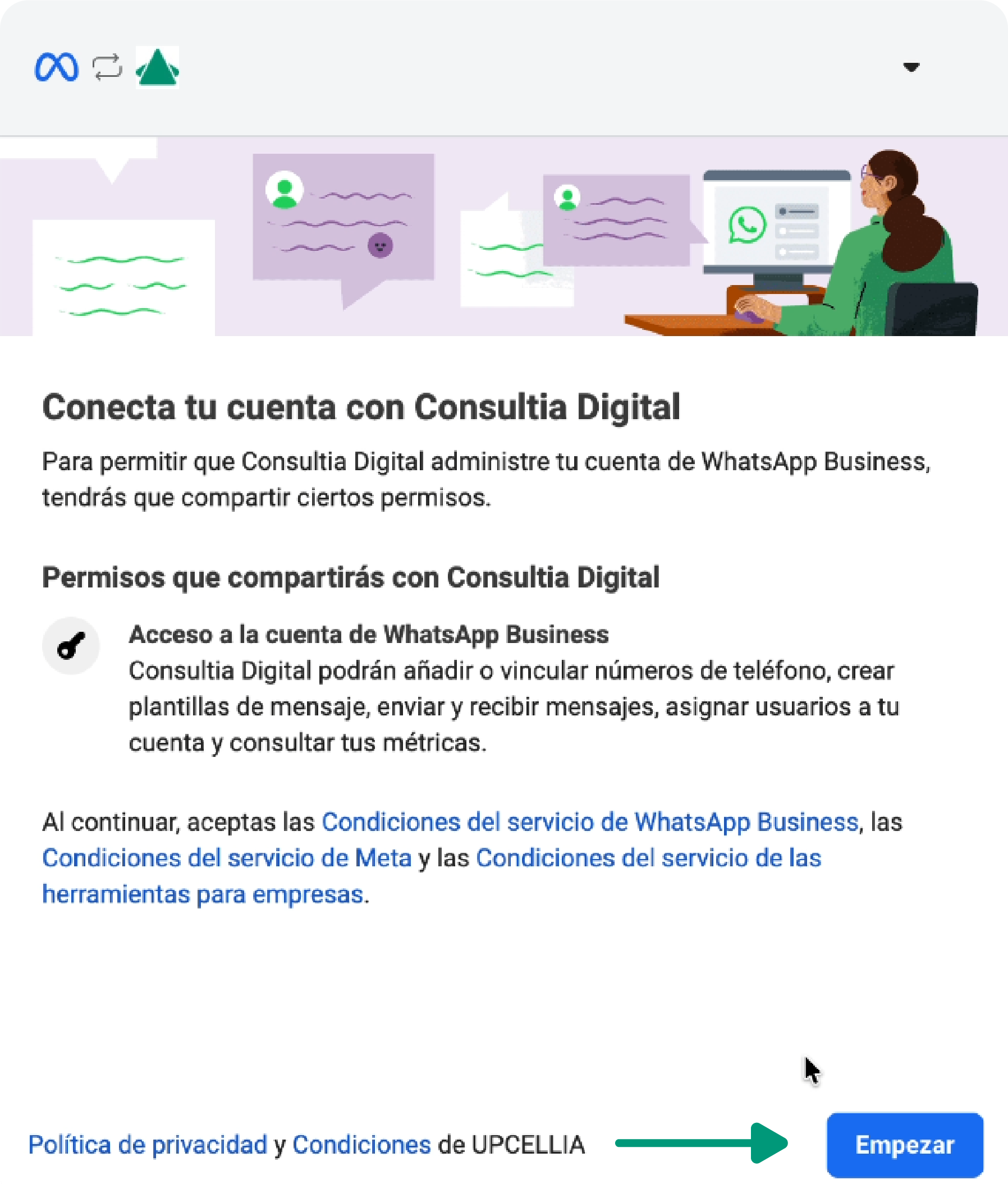 Conectar tu canal de WhatsApp a Upcellia es un proceso sencillo. Sigue estos pasos para integrar tu cuenta y empezar a gestionar tus comunicaciones de forma eficiente: