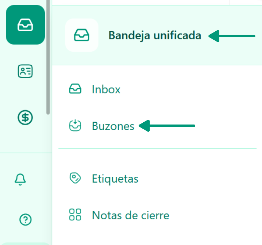 Dirígete a la Bandeja Unificada y selecciona la opción Buzones.