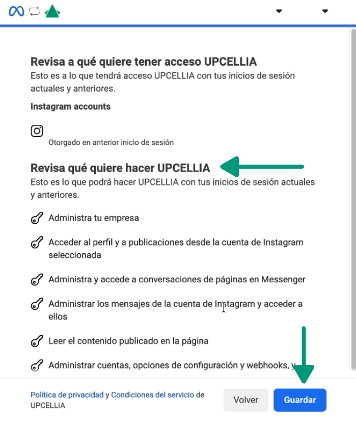 Revisa los permisos que otorgarás a Upcellia.
